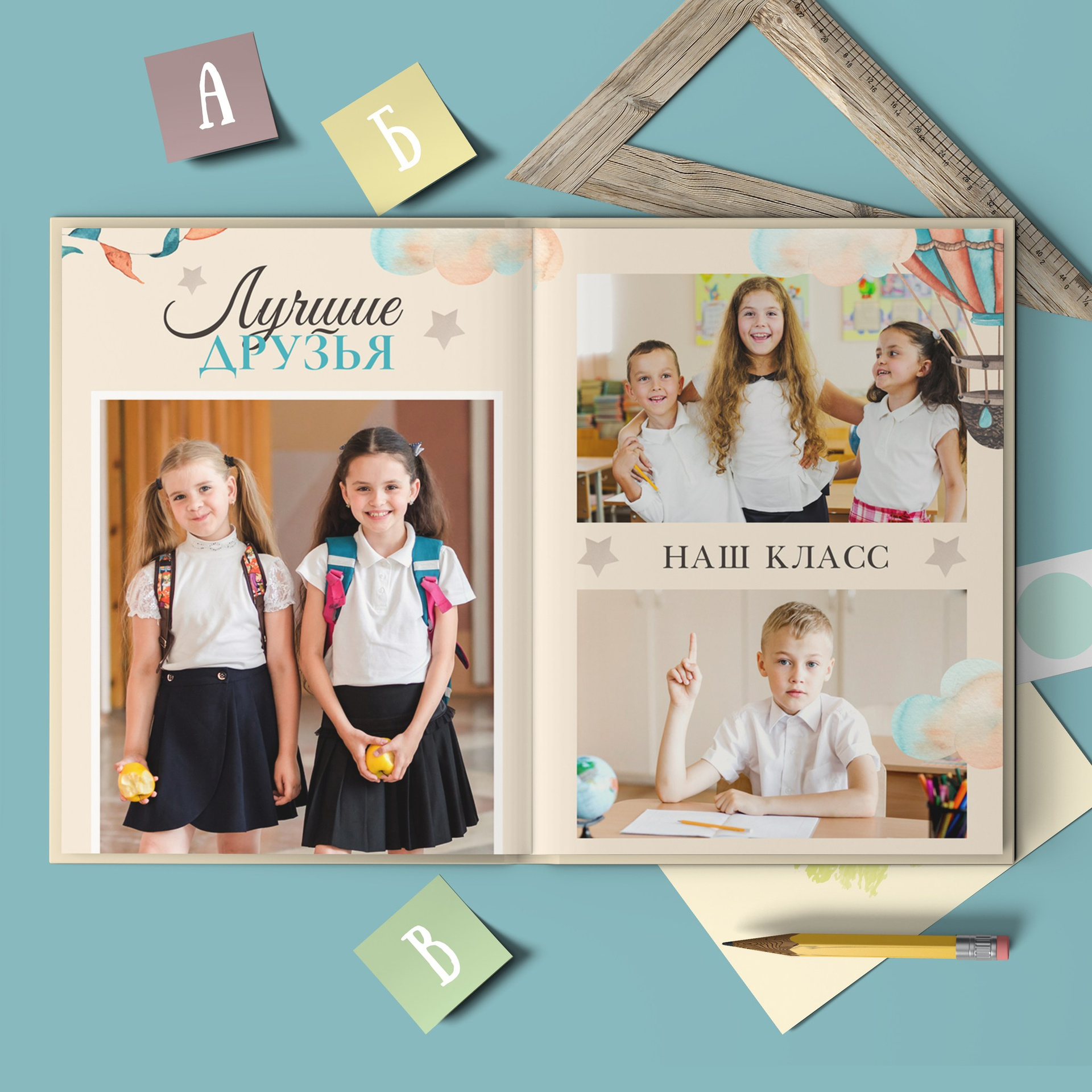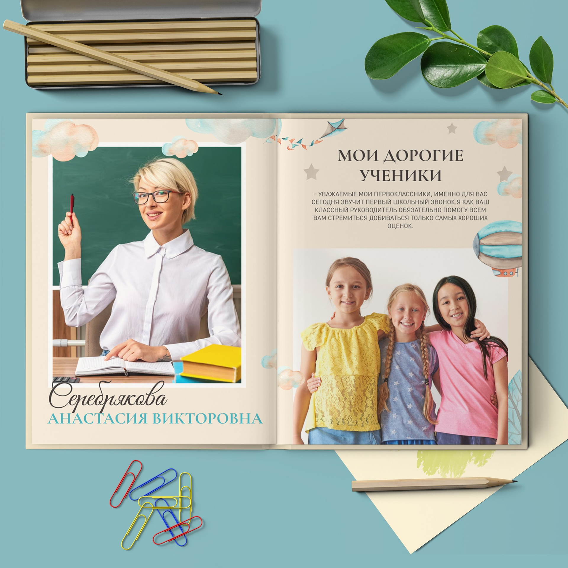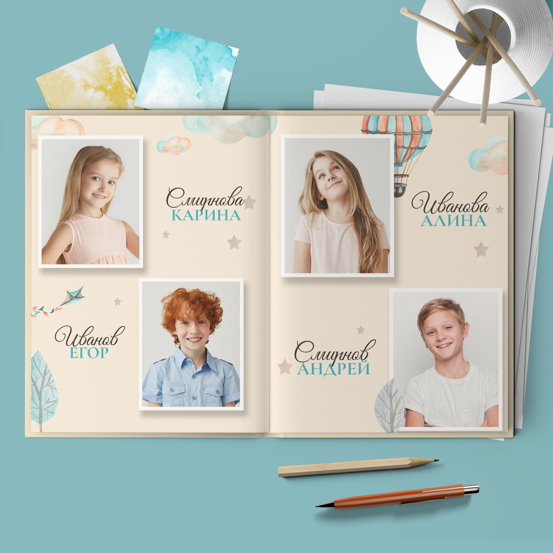 В данном разделе представлены примеры оформления обложки и внутренних разворотов альбома.