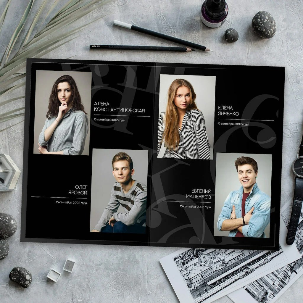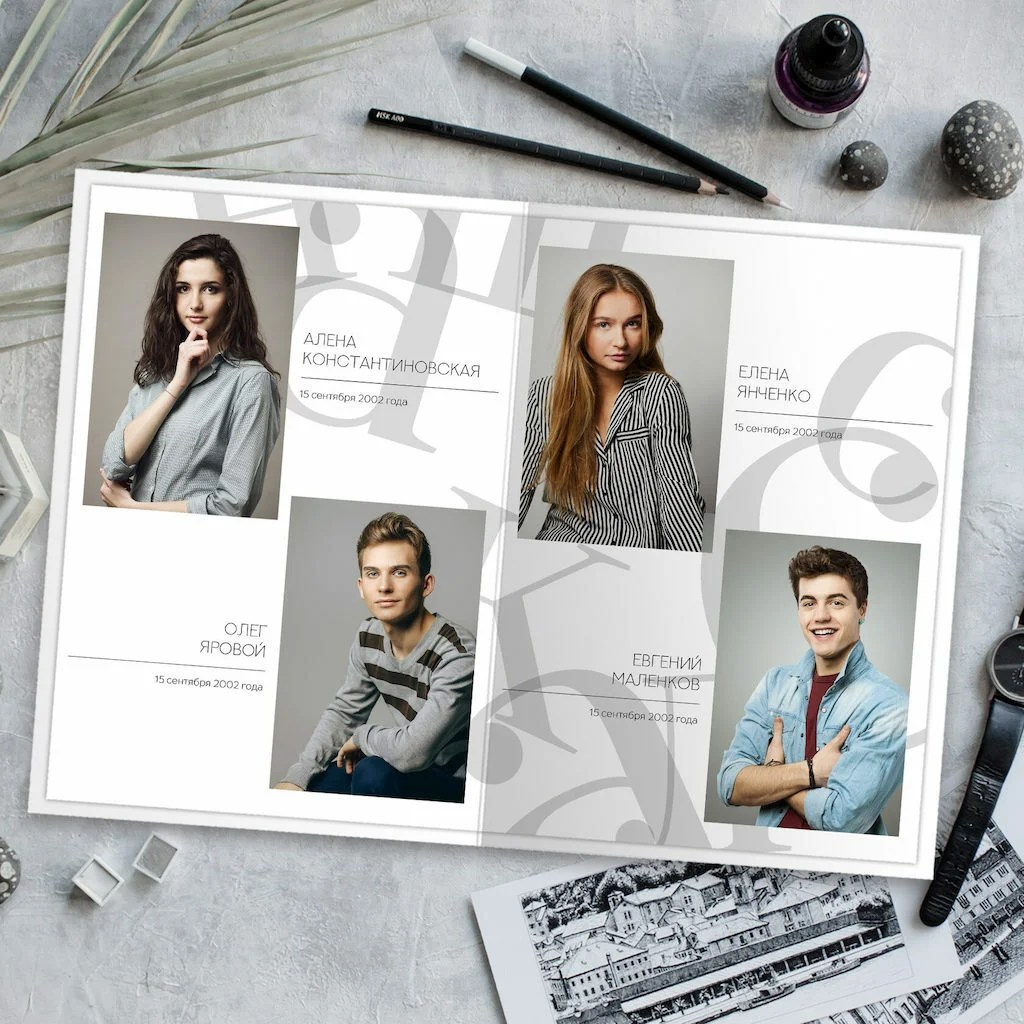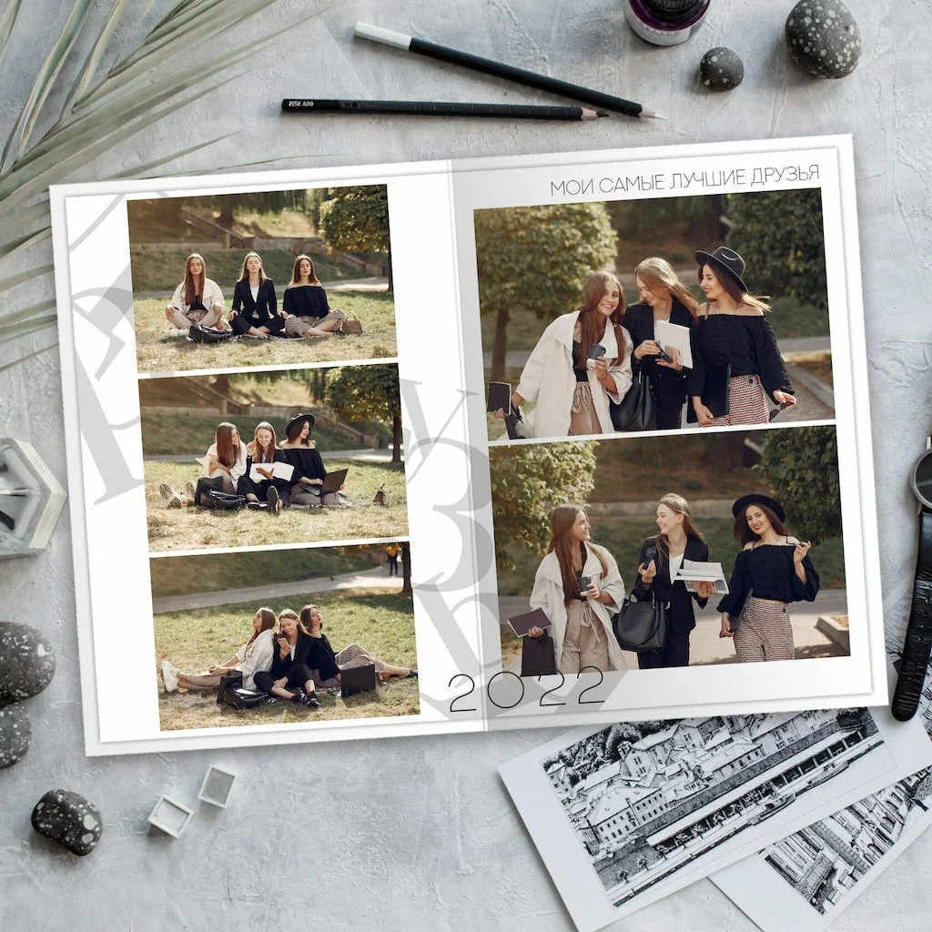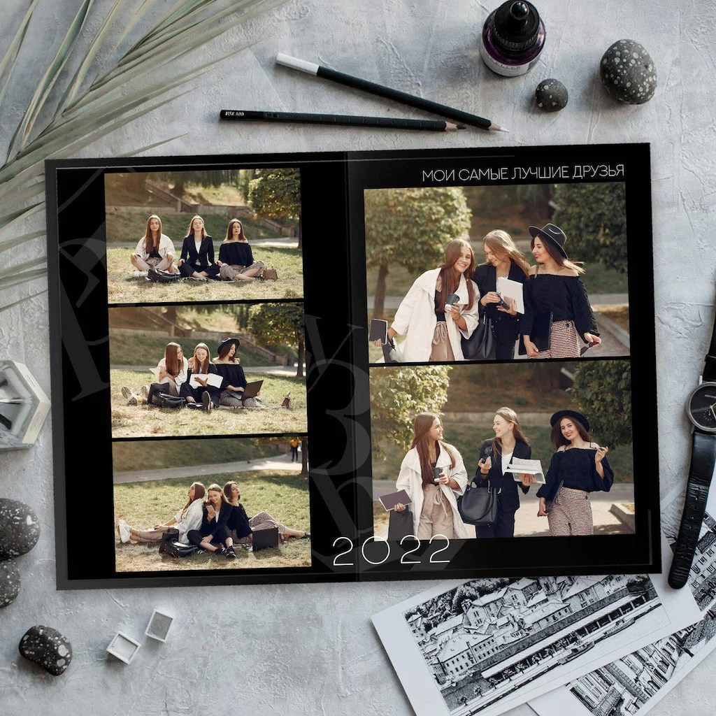 В данном разделе представлены примеры оформления обложки и внутренних разворотов альбома.