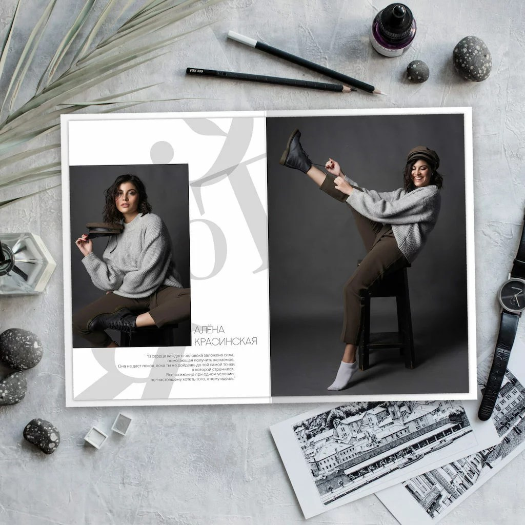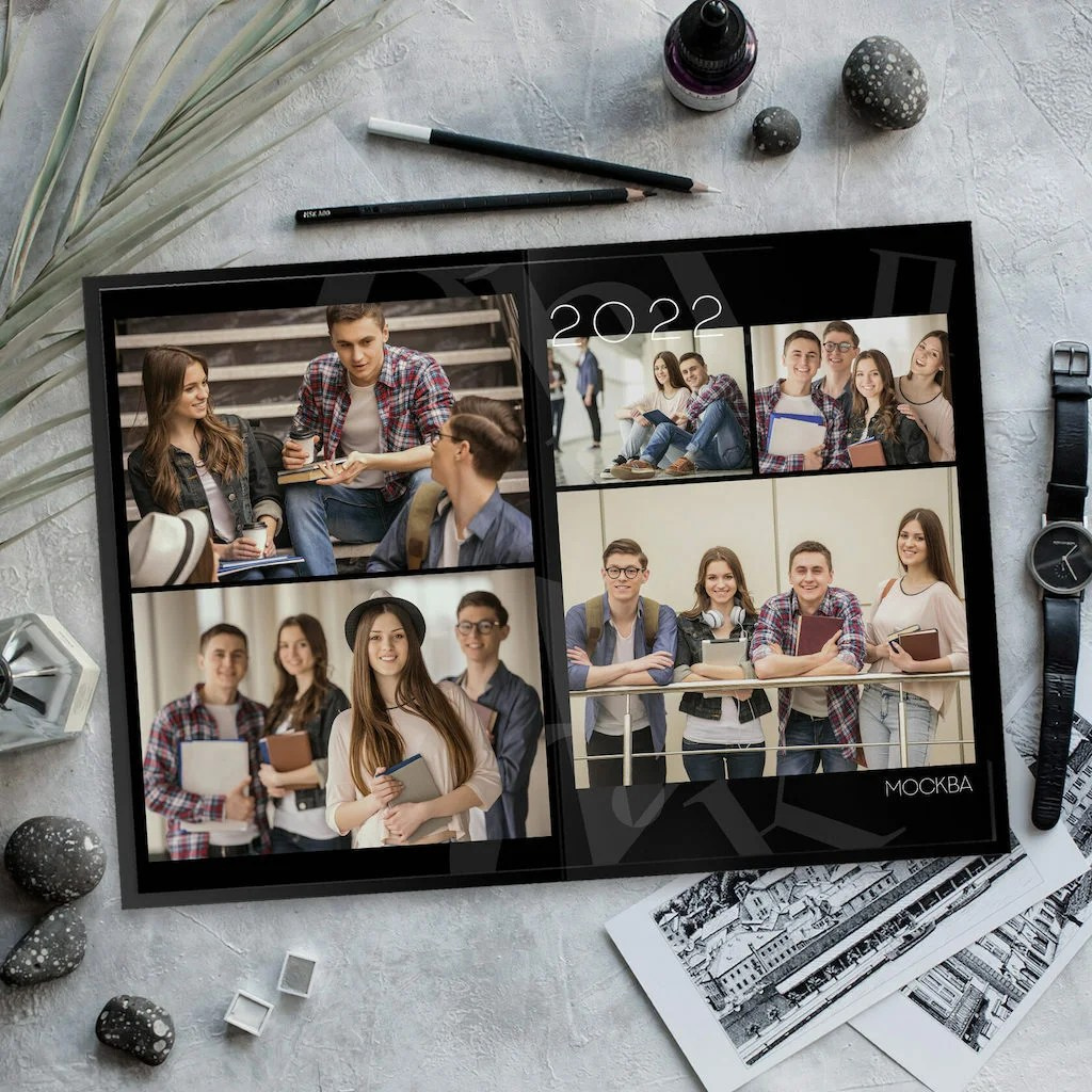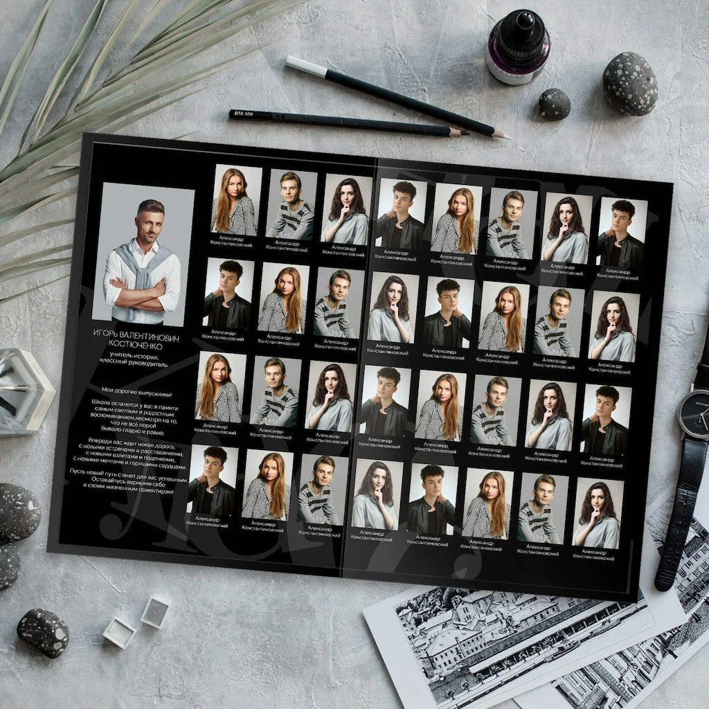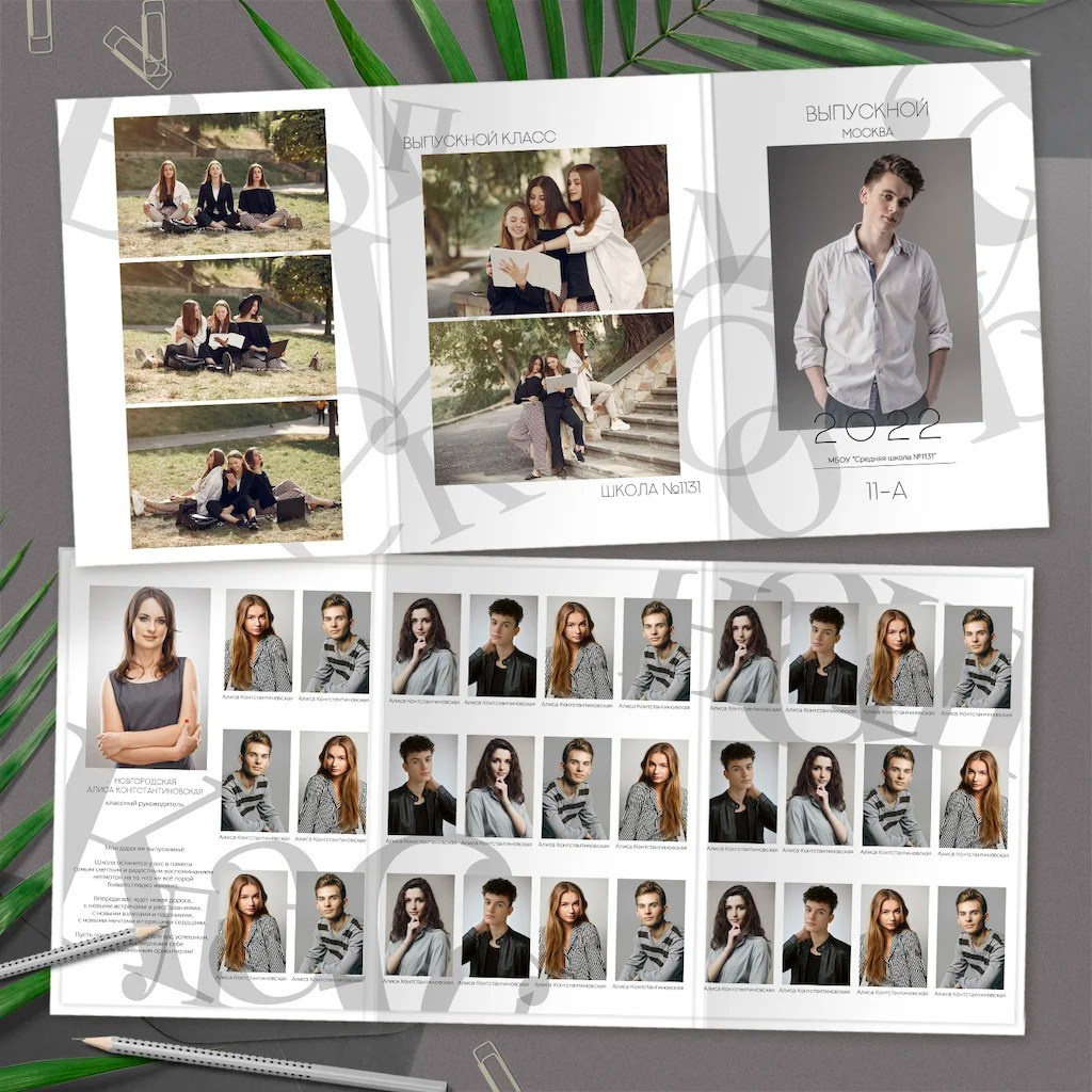 В данном разделе представлены примеры оформления обложки и внутренних разворотов альбома.